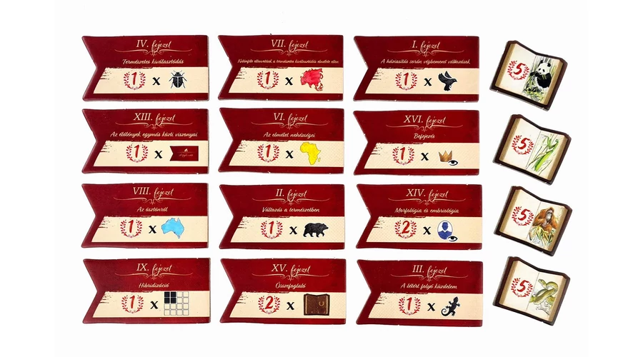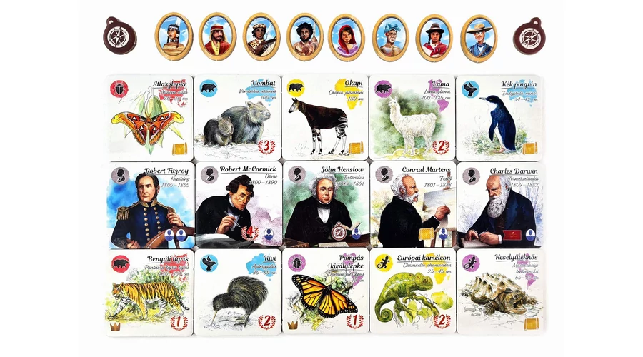 A Darwin nyomában egy hangulatos, bevezető stratégiai társasjáték, ahol a játékosok felfedezőként és kutatóként igyekeznek a lehető legtöbb értékes megfigyelést összegyűjteni. 🧭📒 A játék során okosan kell tervezned, mikor mire fókuszálsz: mely lehetőségek hozzák a gyors pontokat, és mely döntések építenek hosszabb távon stabil előnyt.