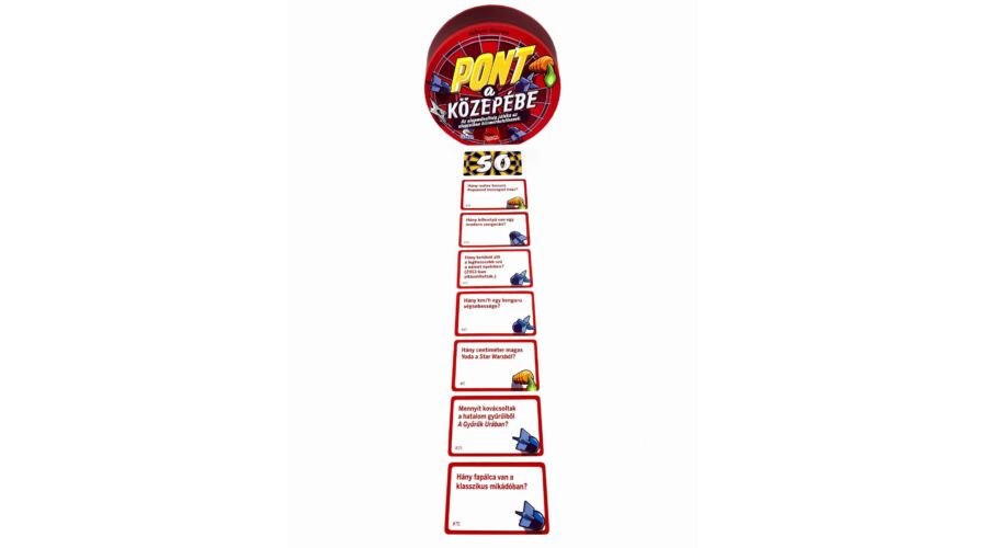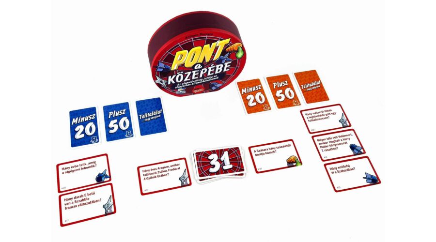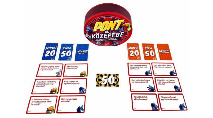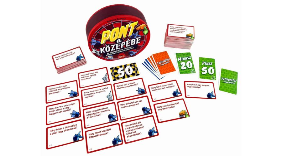 A Pont a közepébe könnyen tanulható, izgalmas kvízjáték. Ebben a társasjátékban a csapatoknak ki kell választaniuk a kérdéseik közül azt, amelynek a válasza a legközelebb esik a középen látható számhoz.