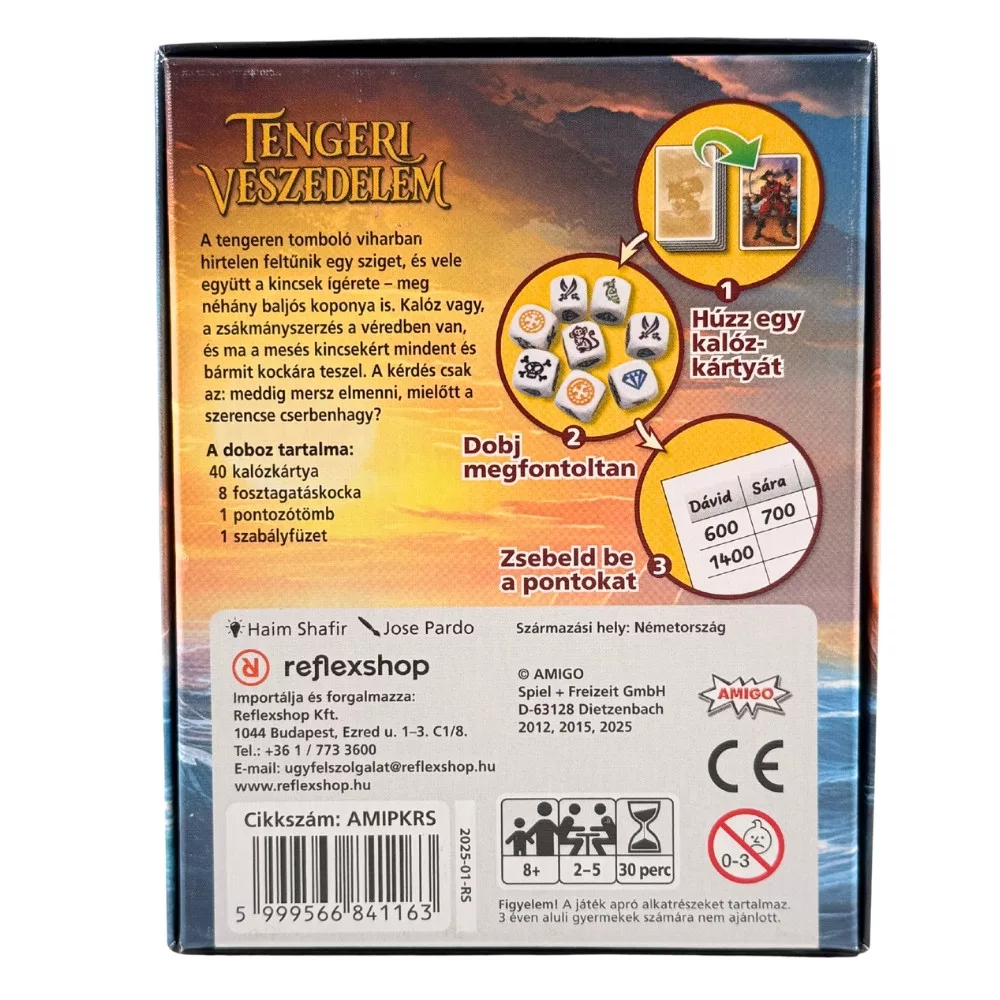 Tengeri veszedelem gyors, feszült és pörgős kockajáték, amely minden pillanatban választás elé állít: mersz tovább kockáztatni… vagy inkább biztosra mész?