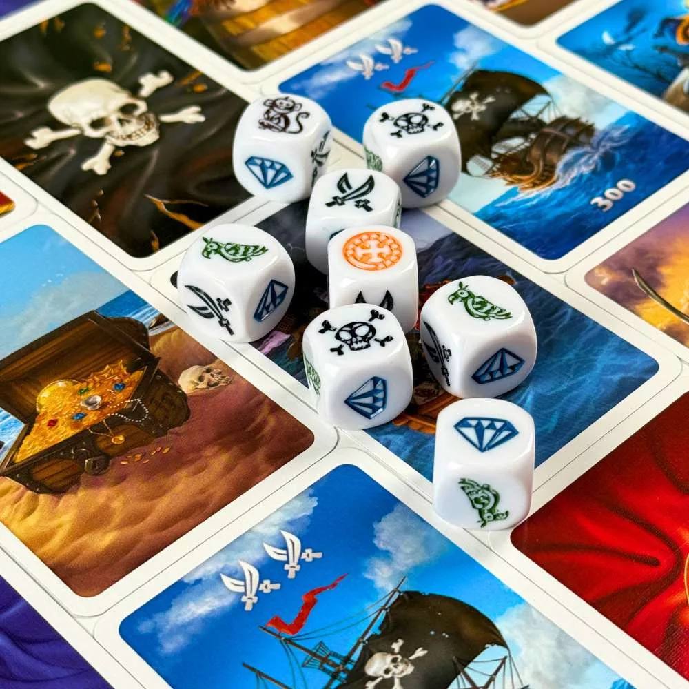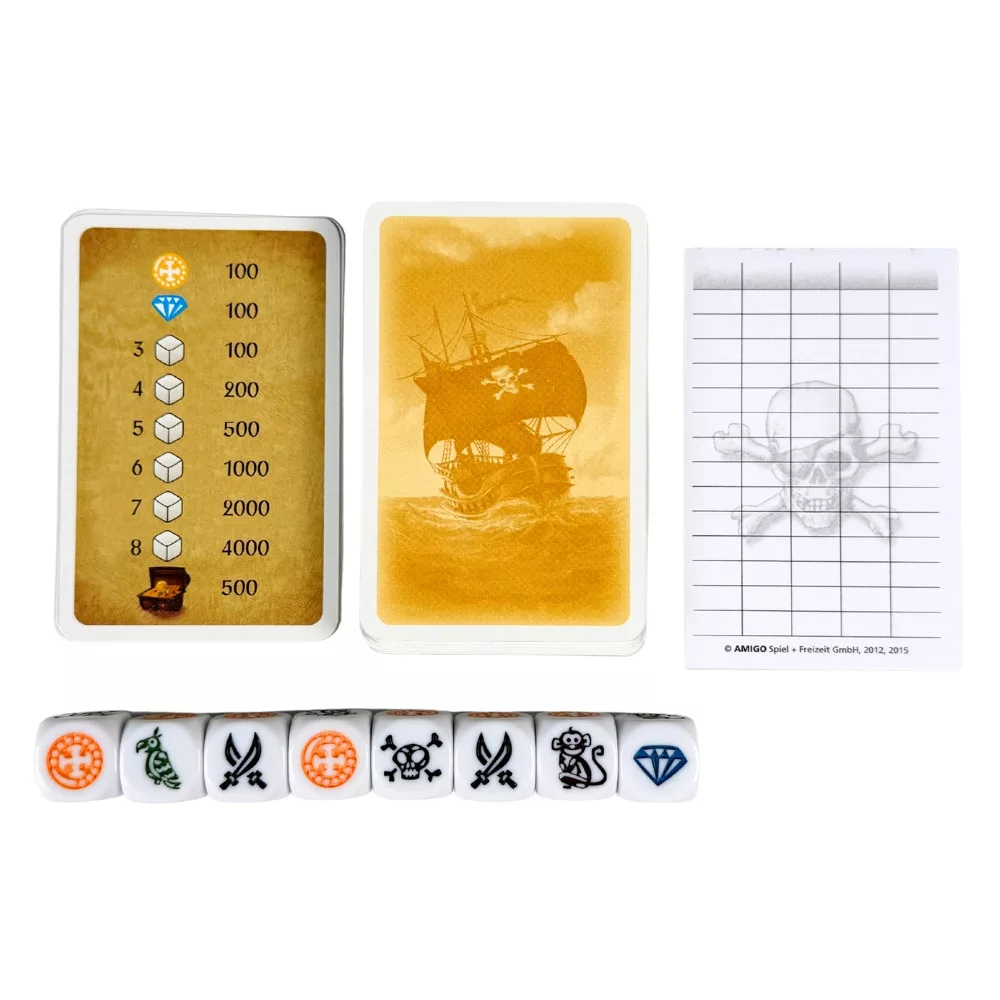 Szállj tengerre vakmerő kalózként, és zsákmányolj minél több kincset! Húzz egy kalózkártyát, dobd a kockákat, és döntsd el, folytatod-e a fosztogatást vagy megállsz, mielőtt a harmadik koponya lenullázná a köröd. A gyémántok és aranyérmék értékes bónuszpontokat adnak, a különböző kombinációkkal pedig egyre nagyobb zsákmányt szerezhetsz.