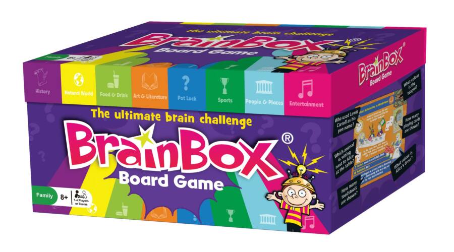 Készen állsz egy valódi BrainBox kihívásra? Emeld fel a játék fedelét, hogy előtűnjön a játéktábla, majd a bábuddal haladva szerezz be egy kártyát minden témakörből, ideértve a Történelem, a Természettudomány, az Ételek és italok, a Művészet és irodalom, a Zsákbamacska, a Sport, a Nevezetes helyek és a Szórakozás tematikát. Ha minden kategóriából megszerezted az egy kártyát, nyertél!