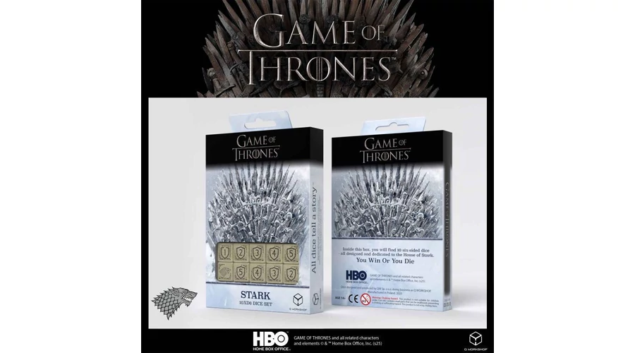 Legyél a fal őrzője ezzel a Game of Thrones dobókocka Stark 10×D6 szettel! Tíz jéghideg szürke D6 kocka fehér gravírozásokkal: direwolf-fejek, télfa, a mottó – “Winter Is Coming”. Praktikus és látványos választás RPG-rajongóknak, társasjáték kedvelőknek és gyűjtőknek. 🐺🏔️