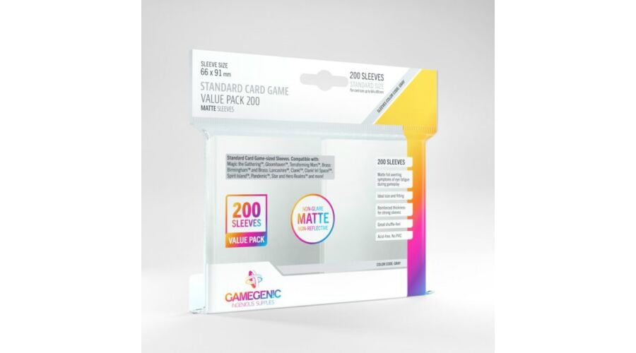 GameGenic Value Pack Standard Matte Sleeves (200 db 64×89 mm-es kártyavédő)