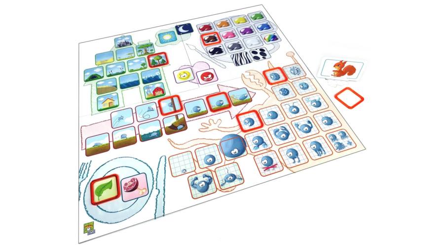 Találjátok ki közösen az állatokat a tulajdonságaik alapján! A Concept Kids egyszerű szabályú családi partijáték óvodásoknak is. A táblán képecskék jelenítik meg az állatok tulajdonságait: színeket, élőhelyeket, külső jellemzőket. A játékos húz egy állatot, és addig kell pakolgatnia a jelzőket a megfelelő tulajdonságokhoz, míg valaki ki nem találja a feladványt. A játékosok életkorától függően játszható teljesen együttműködve és versengve is. A kreativitást és az összefüggések felismerését fejlesztő társasjáték.