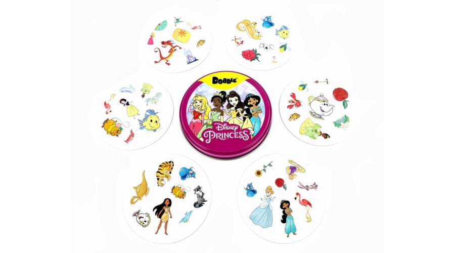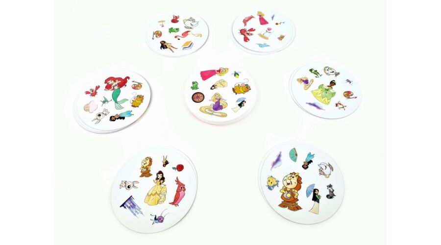 A Dobble Disney Princess, egy olyan kártyajáték, melynek minden lapján 8 szimbólum látható. A lapokon összesen több mint 55 különbüző szimbólum található, és bármelyik két lapon pontosan egy szimbólum azonos. Ez a változat a Disney hercegnők világába repít el. Készen állsz egy Dobble Disney Princess partira? Aranyhaj, Pocahontas, Belle és még sokan mások csak rád varnak!