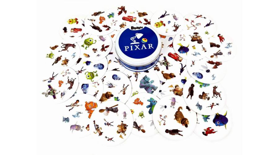 A Dobble Pixar pörgős, zsebre vágható kártyajáték 5-féle játékváltozattal már 4 éves gyerekeknek is. A kártyákon 6-6 különböző, népszerű rajzfilmekből ismert képecske látható, és bármelyik két kártyán mindig van egy ugyanolyan belőlük. A játékosok feladata, hogy a többieknél gyorsabban megtalálják a közös képeket. A koncentrációt és a reflexeket fejlesztő társasjáték.