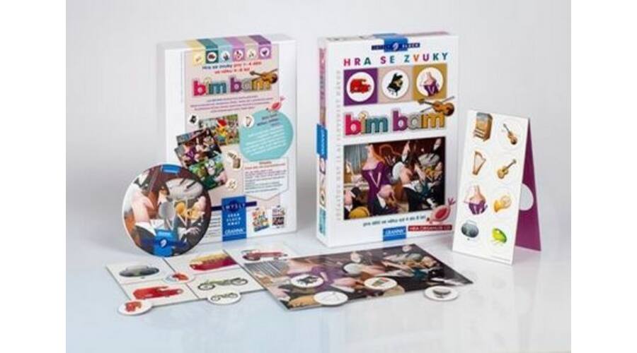 Bim-bam zenés memóriajáték hangokkal és képekkel óvodásoknak. A gyermekek a hangok felismerését gyakorolják, három különböző játéklehetőséggel. A színes táblák négy hangos helyszínre kalauzolnak: koncertterembe, éneklő óvodások közé, zajos utcára és egy mesebeli faluba. A kis képek és korongok az ott hallható hangok forrásait ábrázolják, a CD-n a hozzájuk tartozó hangok szólalnak meg