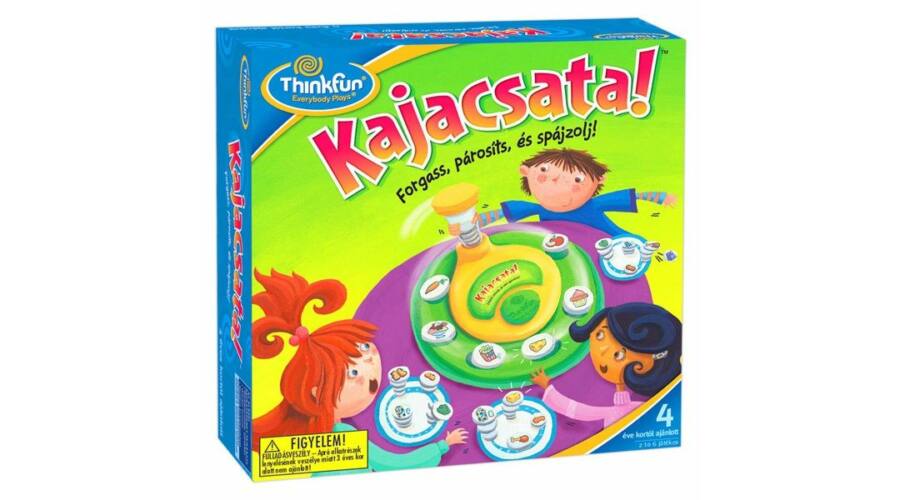 Kajacsata! Forgass, párosíts és spájzolj! A játék az alábbi képességeket fejleszti: összehasonlítás, párosítás; vizuális észlelés; memória és koncentráció. A játék kétféle nehézségi szinten játszható. Ha egy jó társasjátékra vágysz, csak tedd a Kajacsatát az asztalra, és szolgálj fel egy lendületes, párosító, kajakoronggyűjtő játékot! Forgasd meg a forgatható tárolót, ezzel kiosztod a kajakorongokat. Keress párokat a tányérodon. Fordítsd fejjel lefelé a kajakorongot, hogy lásd, mit kell majd párosítani. Szerezd meg a legtöbb kajakorongot, hogy te lehess a győztes! Kitűnő szórakozás az egész család számára!
