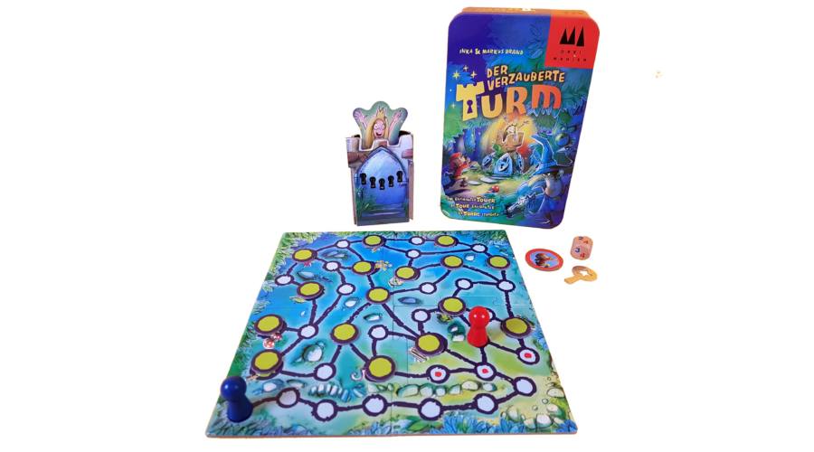 Szabadítsátok ki a hercegnőt a torony fogságából! Az elvarázsolt torony – fémdobozos társasjáték zsebre vágható családi játék. Az egyik játékos gonosz varázslóként üldözi a többi játékos által közösen irányított lovagot. Vajon melyikük találja meg előbb a torony valódi kulcsát? Az együttműködést fejlesztő társasjáték.