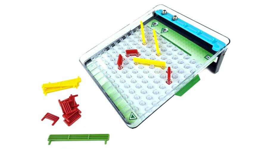 A játék menete: Hajtsd ki a játéktábla lábát, és a lejtős táblát tedd egy vízszintes felületre (fontos, hogy a meredekség megfelelő legyen).