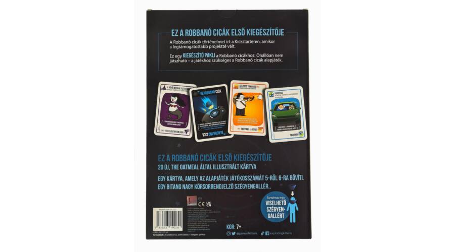 A Robbanó cicák egy díjnyertes kártyajáték, amely a beírta magát a Kickstarter történelmébe, mint minden idők legtöbb támogatást kapott projektje. A Berobbanó cicák képében pedig megérkezett a legelső, nagy kiegészítő, amely 20 új kártyát tartalmaz, amelyek 6 új akciótípust és egy Berobbanó cicát tartalmaz, ami 5 játékosról 6-ra főre növeli a játékosszámot.