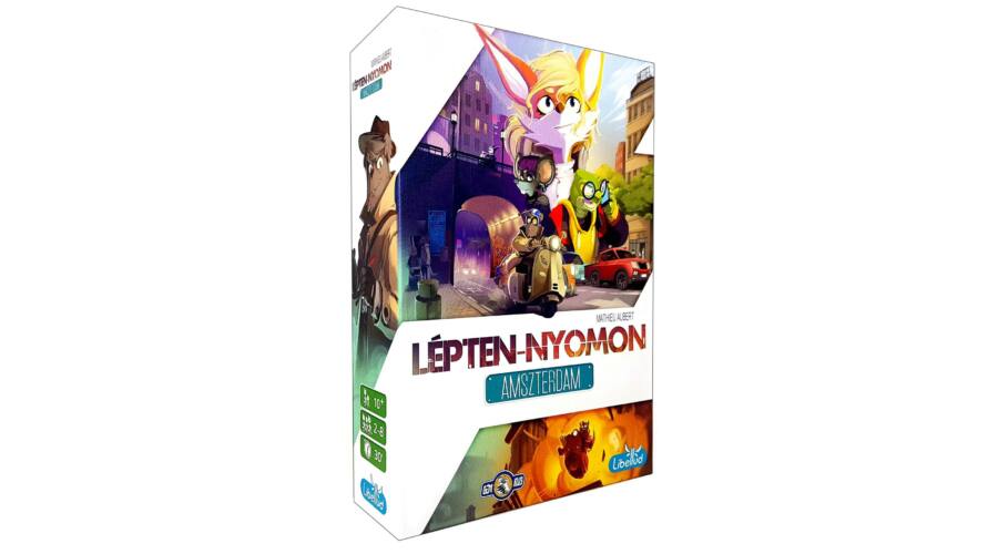 Két nyomozócsapat versenyfutása Amszterdam színes utcáin. A Lépten-nyomon: Amszterdam gyorsasági asszociációs partijáték. A csapatok vezetői képek segítségével igyekeznek rávezetni társaikat arra, merre haladjanak a táblán – kikerülve a csapdákat és elsőként felderítve a bűnügyet! A kommunikációt és a kreativitást fejlesztő társasjáték.