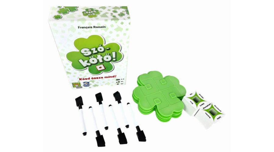 Négy szó, négy kártya – megtaláljátok a helyüket? A Szókötő újszerű, kooperatív, szóasszociációs partijáték. A játékosok a saját tábláikra helyezett szópárokhoz írnak (letörölhető tollakkal) egyszavas segítségeket – a többieknek rá kell jönniük, mely kártyák milyen pozícióban illenek a felírt szavakhoz. A szókincset és a kreativitást fejlesztő társasjáték.