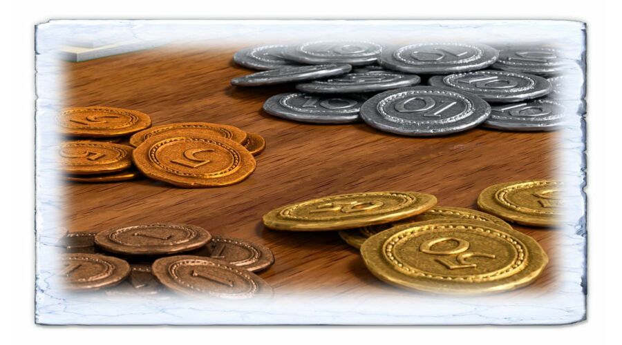 A deluxe kiadás része: fémpénzek, nyomtatot fa alkatrészek, egyedi húzózsák, vastagabb kartonból készült lapkák és további Gamefound kampány célok.