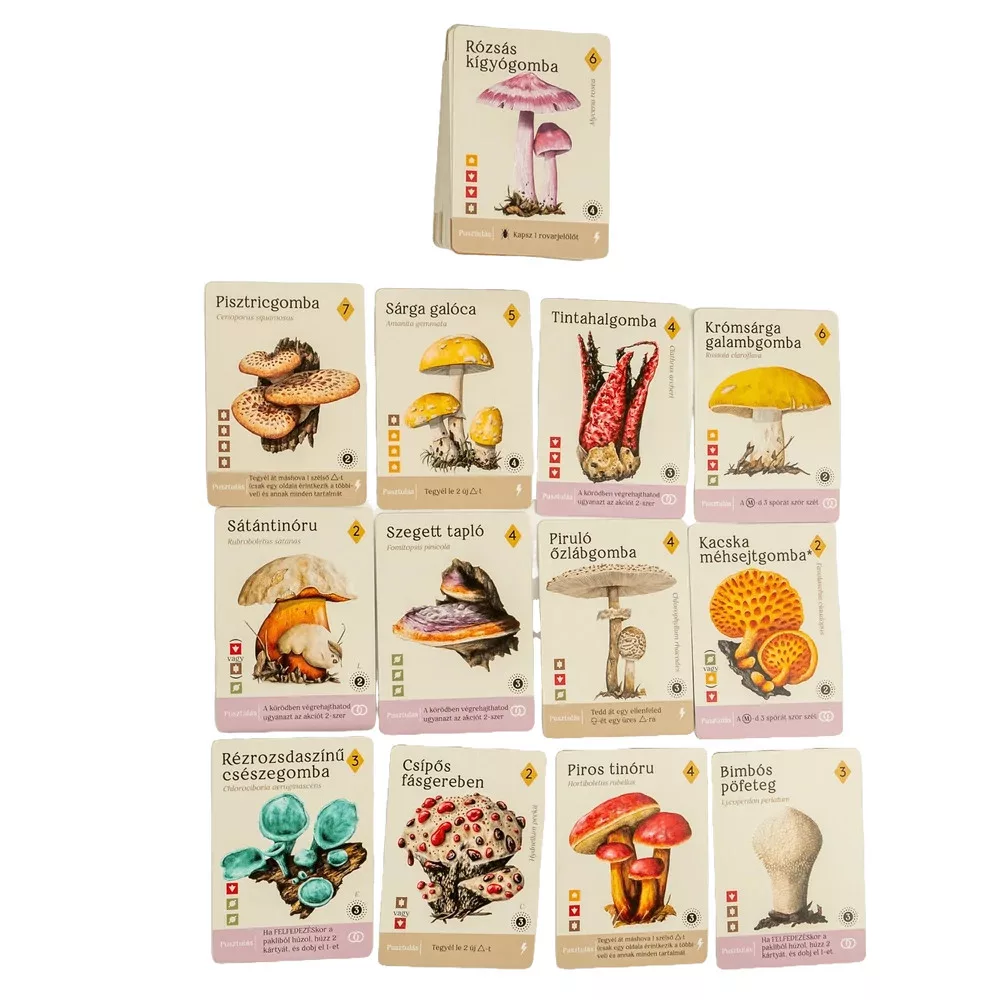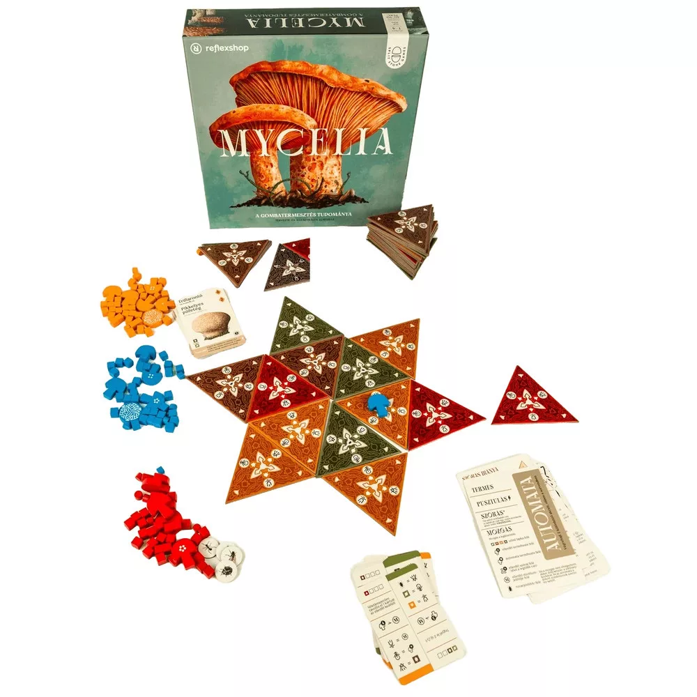 A háromszöglapokból álló tábla folyamatosan változik, ahogy a játékosok új környezeteket és tápanyagokat adnak hozzá, így a gombák világa állandóan fejlődik. A Mycelia nemcsak a játékmenetben varázsol el, hanem a gyönyörű, botanikai stílusú illusztrációival is, amelyek több mint 69 vadon élő gombafajtát mutatnak be.